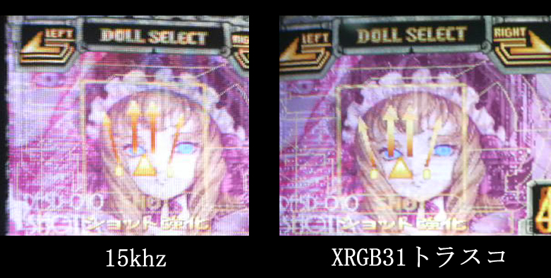 次に15khz直繋ぎとXRGB3トラスコモードの画質比較。